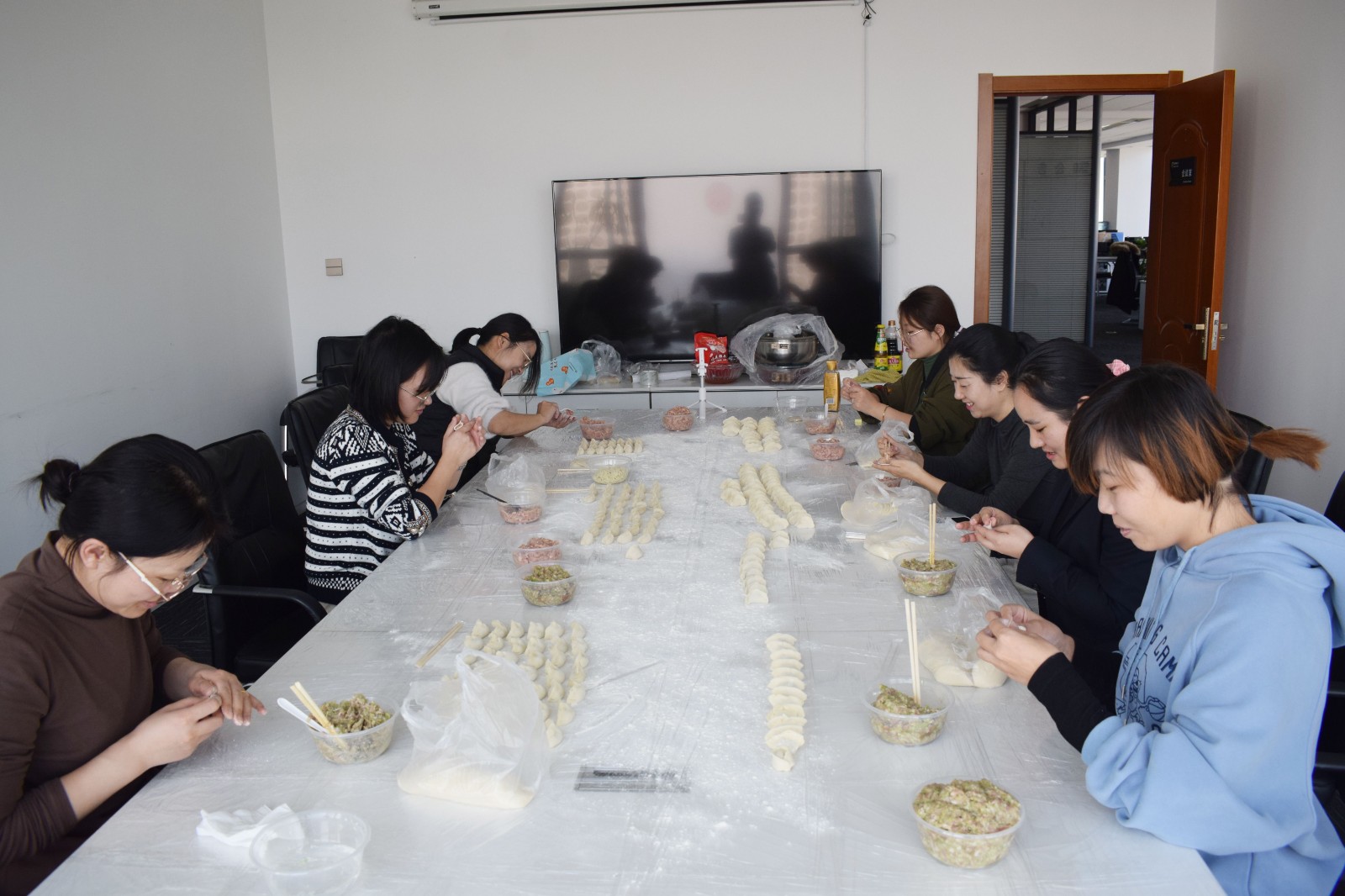 “素衣臺案前,巧手賽天工。雪花紛飛舞,皎月平空現(xiàn)。清水飄芙蓉,元寶落玉盤。饕餮世間味,最是此物鮮。”冬至是二十四節(jié)氣的一個重要節(jié)氣,也是中華民族的傳統(tǒng)節(jié)日,在這個時候來一份屬于冬至的美食,也是對不久之后春節(jié)團圓的期盼。為進一步弘揚民俗文化,繼承傳統(tǒng)習俗,豐富員工的工作文化生活,增加凝聚力。12月21日上午,人事行政部組織辦公室員工舉辦包餃子活動。